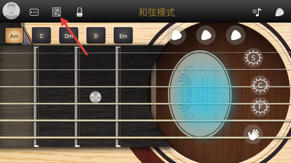 2、如圖點(diǎn)擊左上角和弦標(biāo)志。